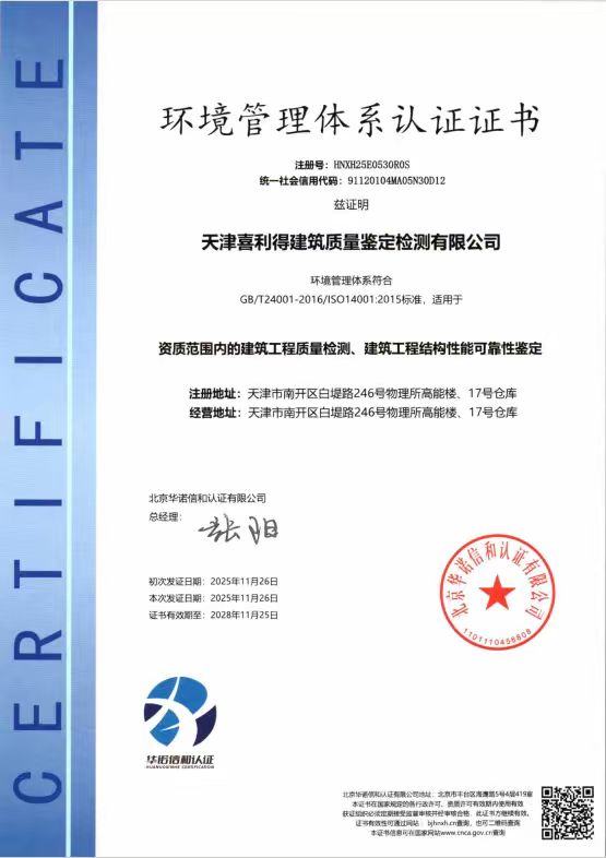 天津喜利得建筑質量鑒定檢測有限公司于2017年2月在天津市市場和質量監督管理委員會南開區市場和質量監督管理局注冊成立。于2018年8月18日取得天津市住房和城鄉建設委員會頒發的建設工程質量檢測機構資質證書。